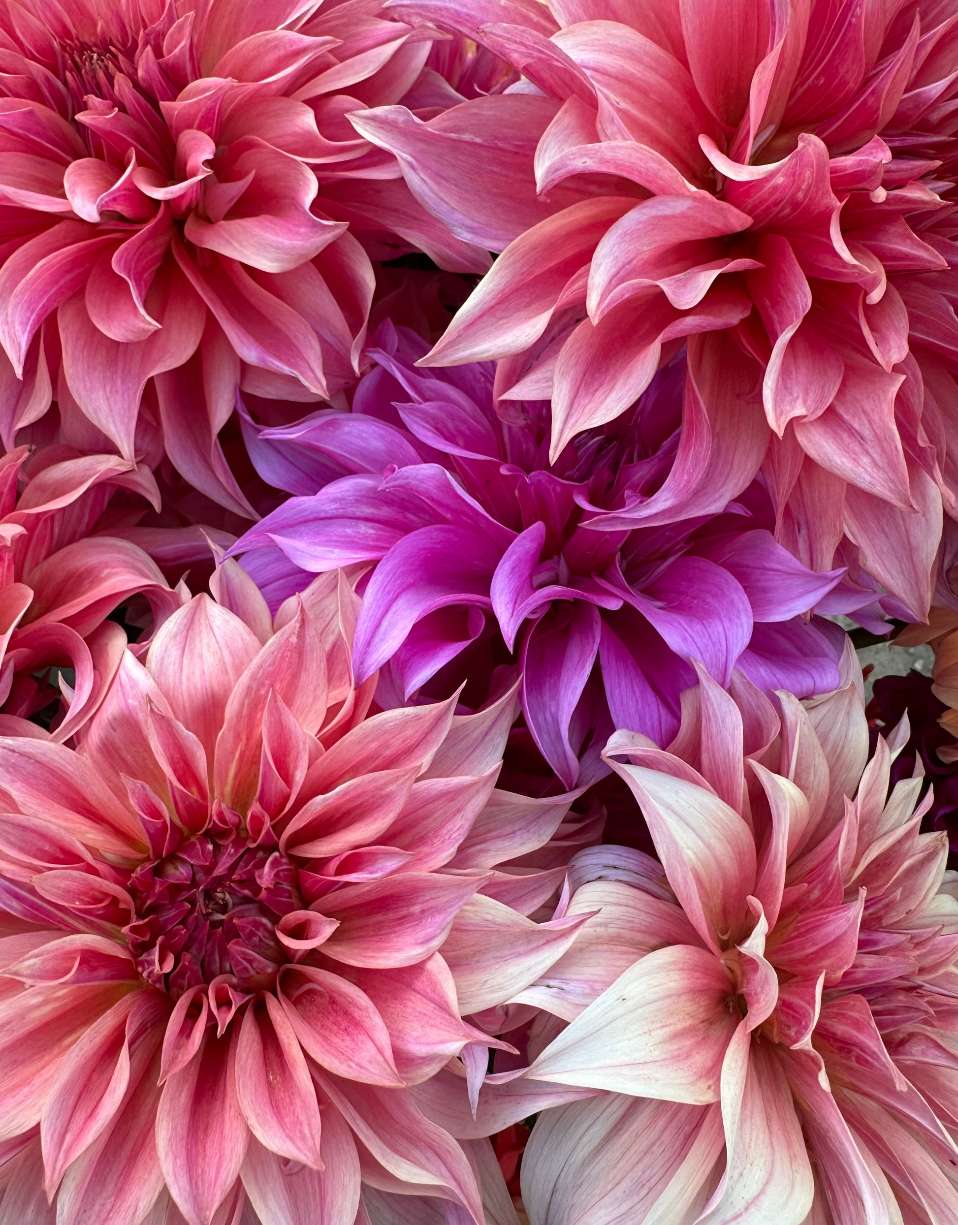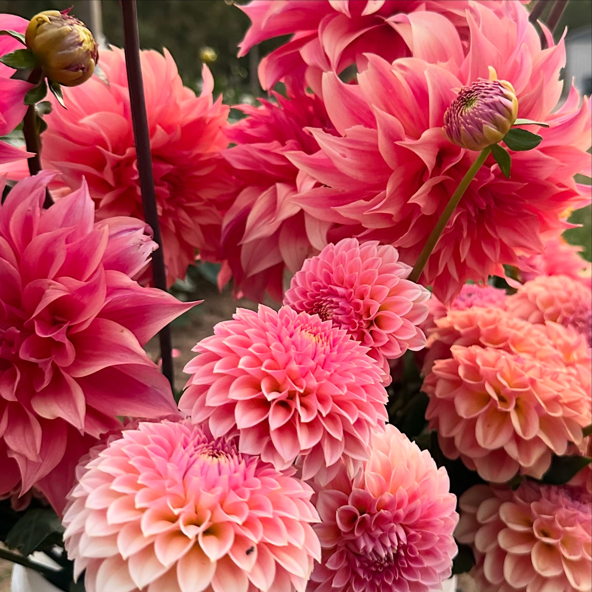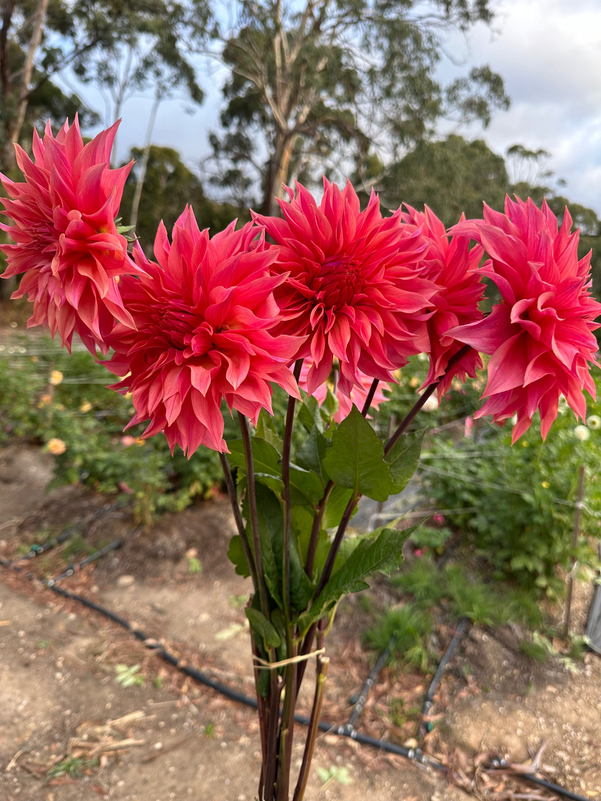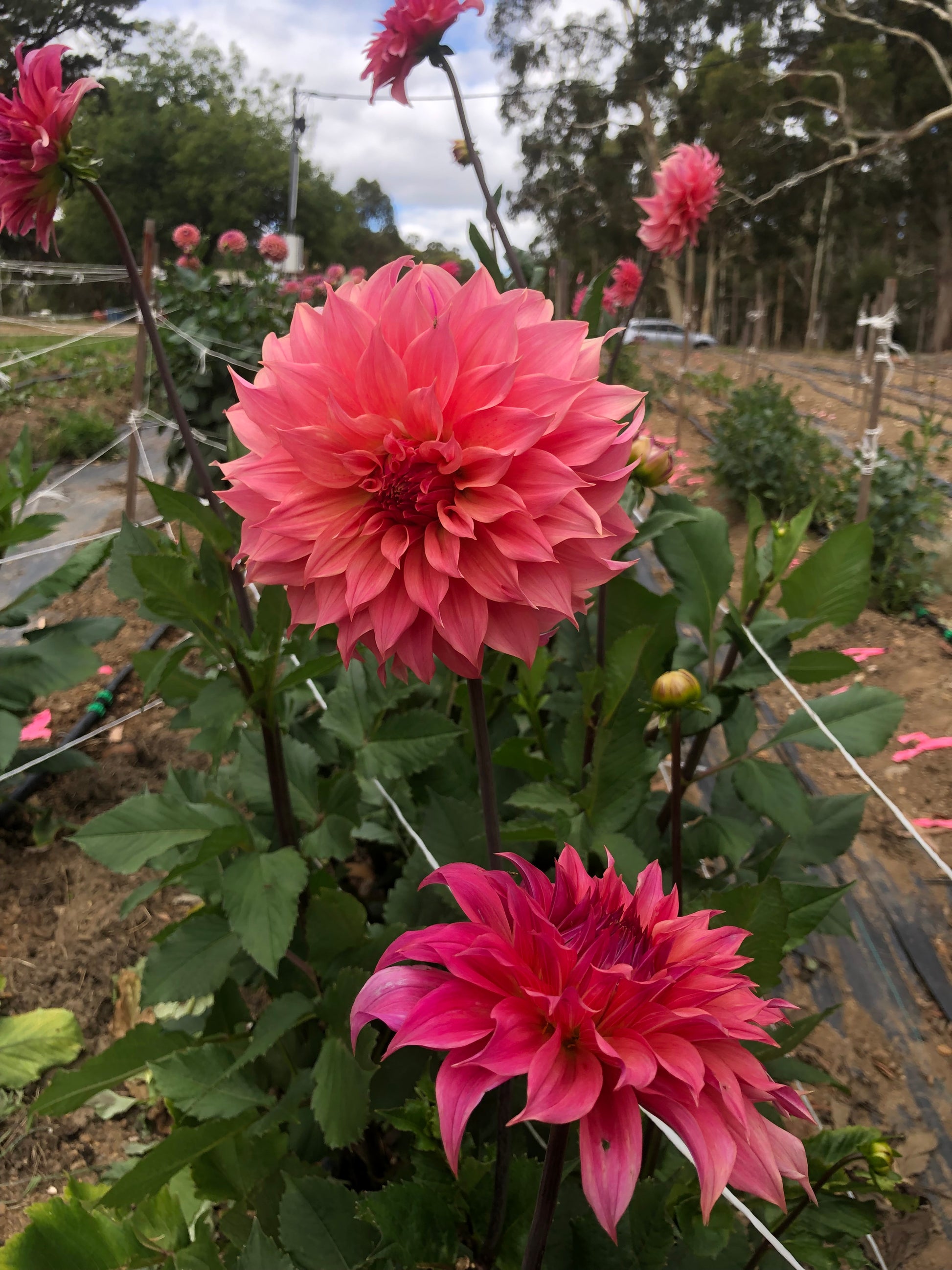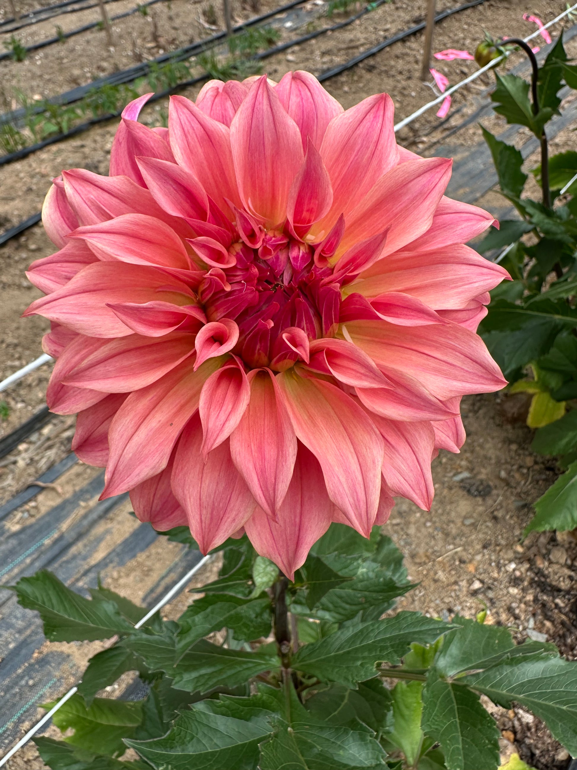 A medium decorative dahlia with watermelon coloured petals. Long stems and consistent flowers throughout the season, means she has been one of our best performers on the farm.