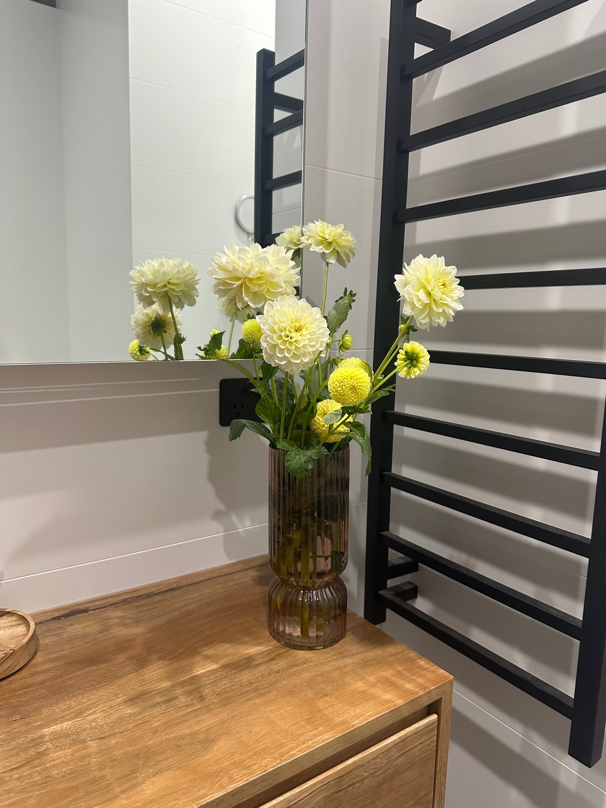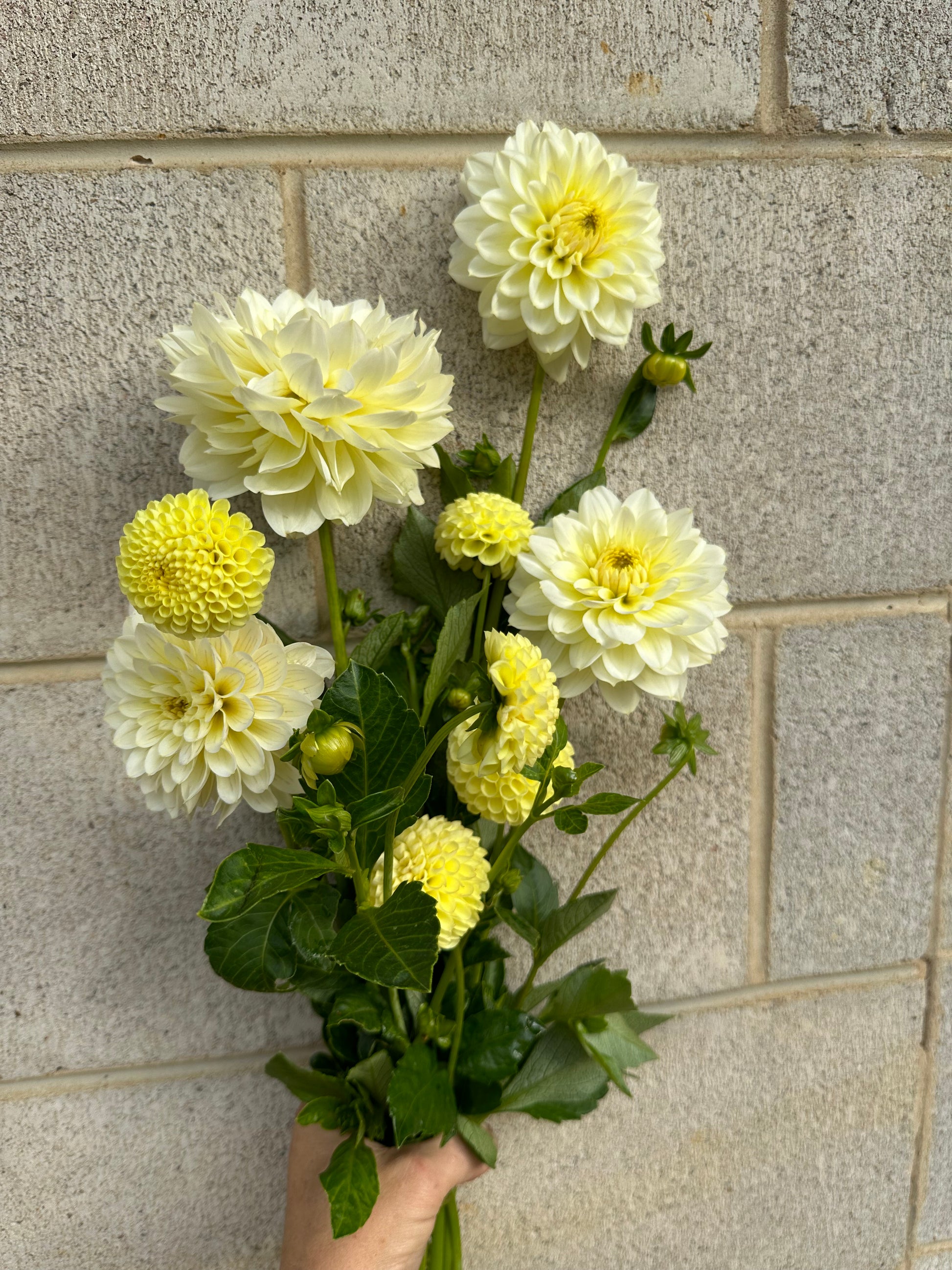 Soft, pretty, fluffy pale lime yellow blooms. Miniature decorative form. In my top 5 favourites