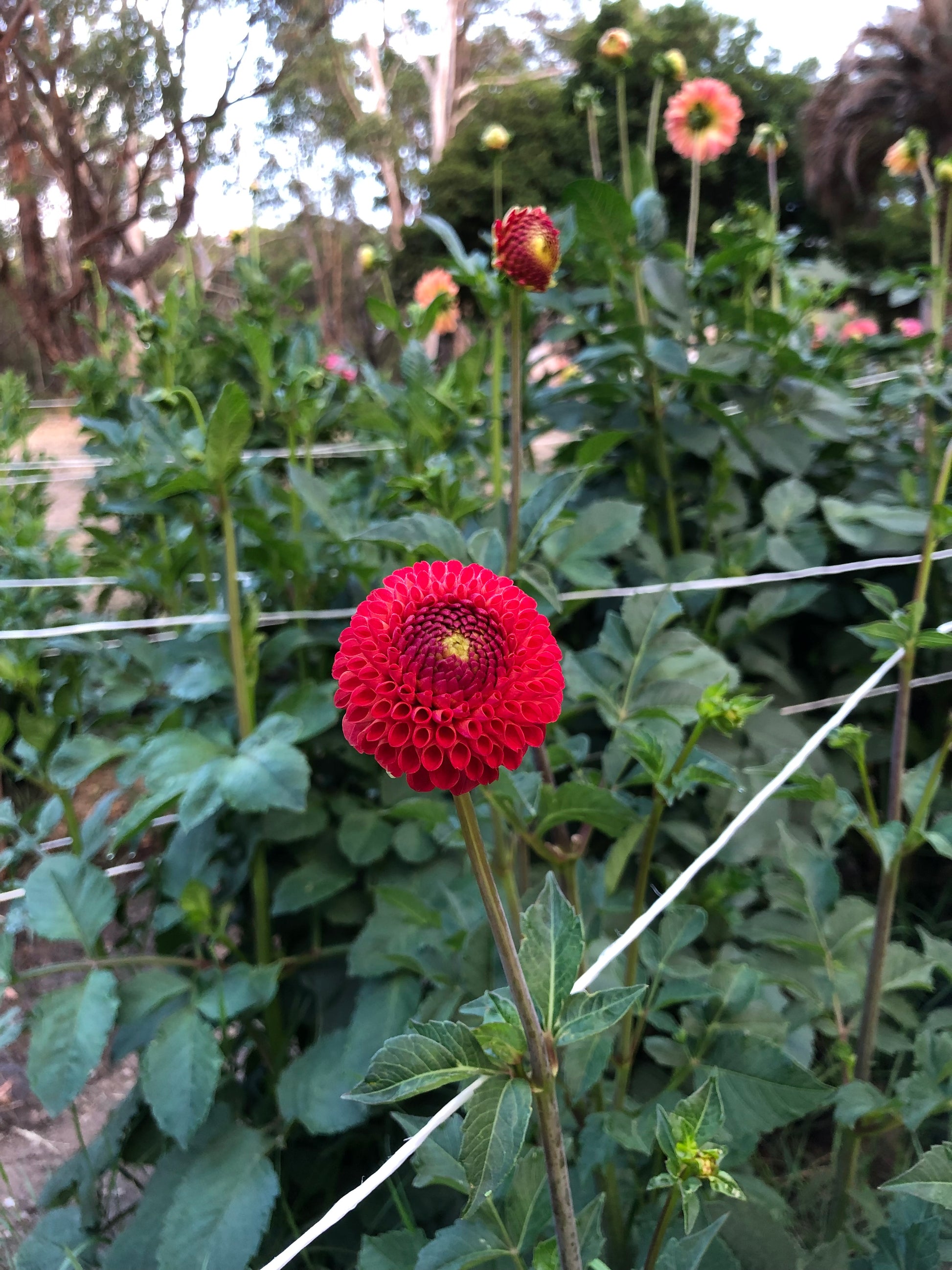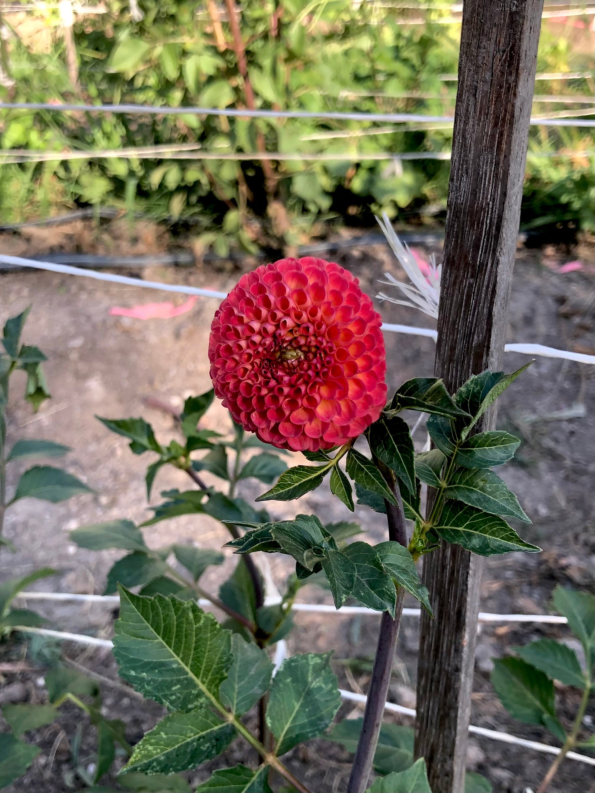 Pocket-sized pompon in rich burnt-orange verging on red. Small but vivid, and bred right here in SA.