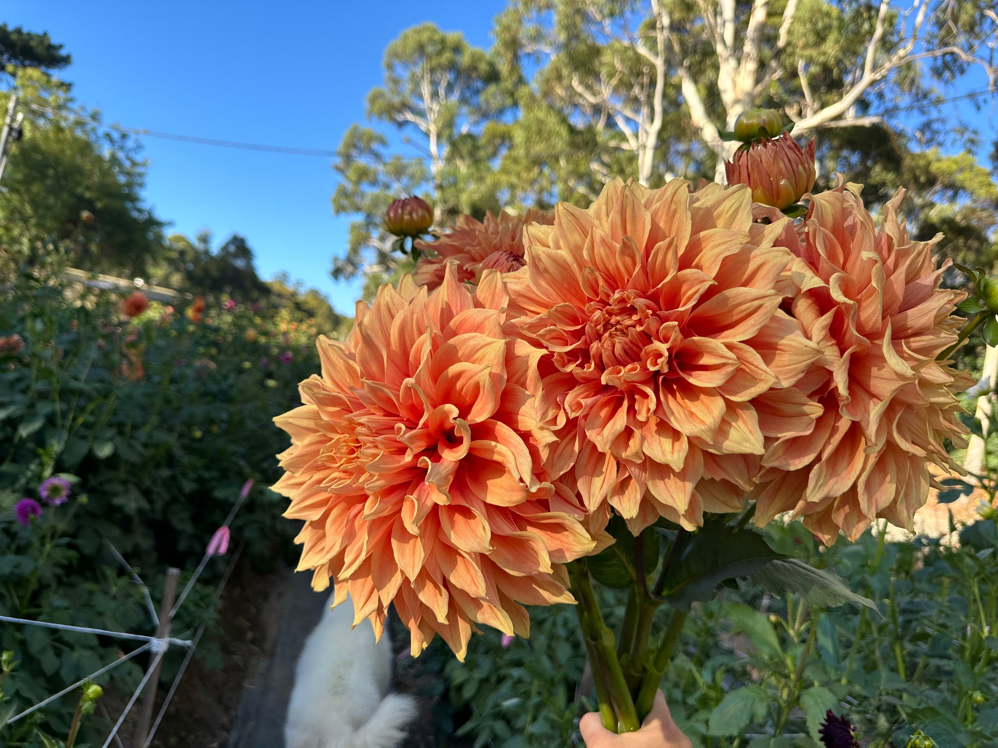If we could have a field of Winkie Whopper we would. Blooms as large as your face on the strongest of stems. With orange and apricot blooms, this giant dahlia is a definite for every dahlia grower